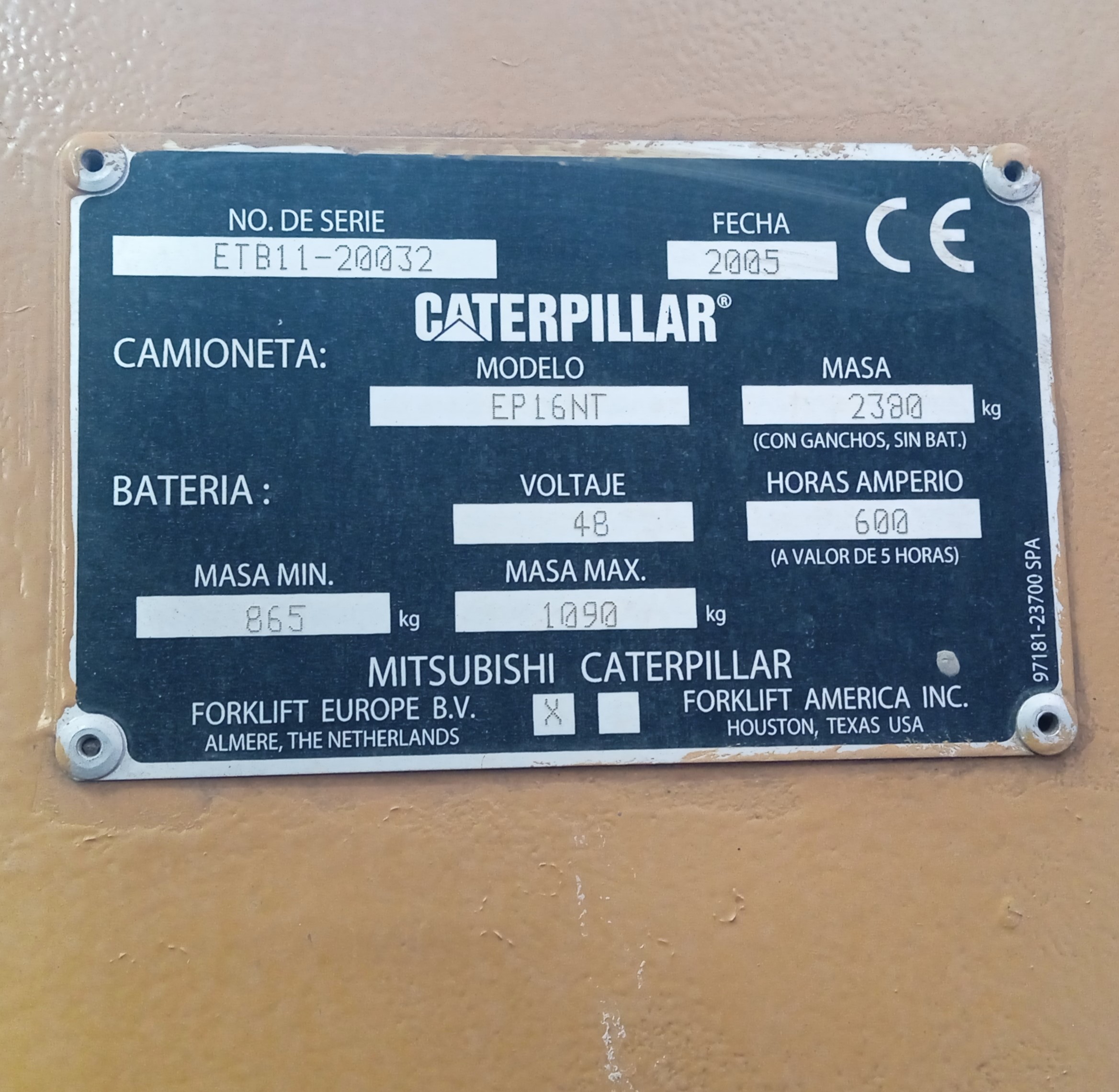 La Caterpillar EP16NT es una carretilla elevadora eléctrica de tres ruedas, ideal para operaciones en almacenes y espacios reducidos. Con una capacidad de carga de 1.600 kg y un mástil triplex que alcanza una altura de elevación de 4.750 mm, ofrece un rendimiento eficiente para tareas de manipulación de materiales.