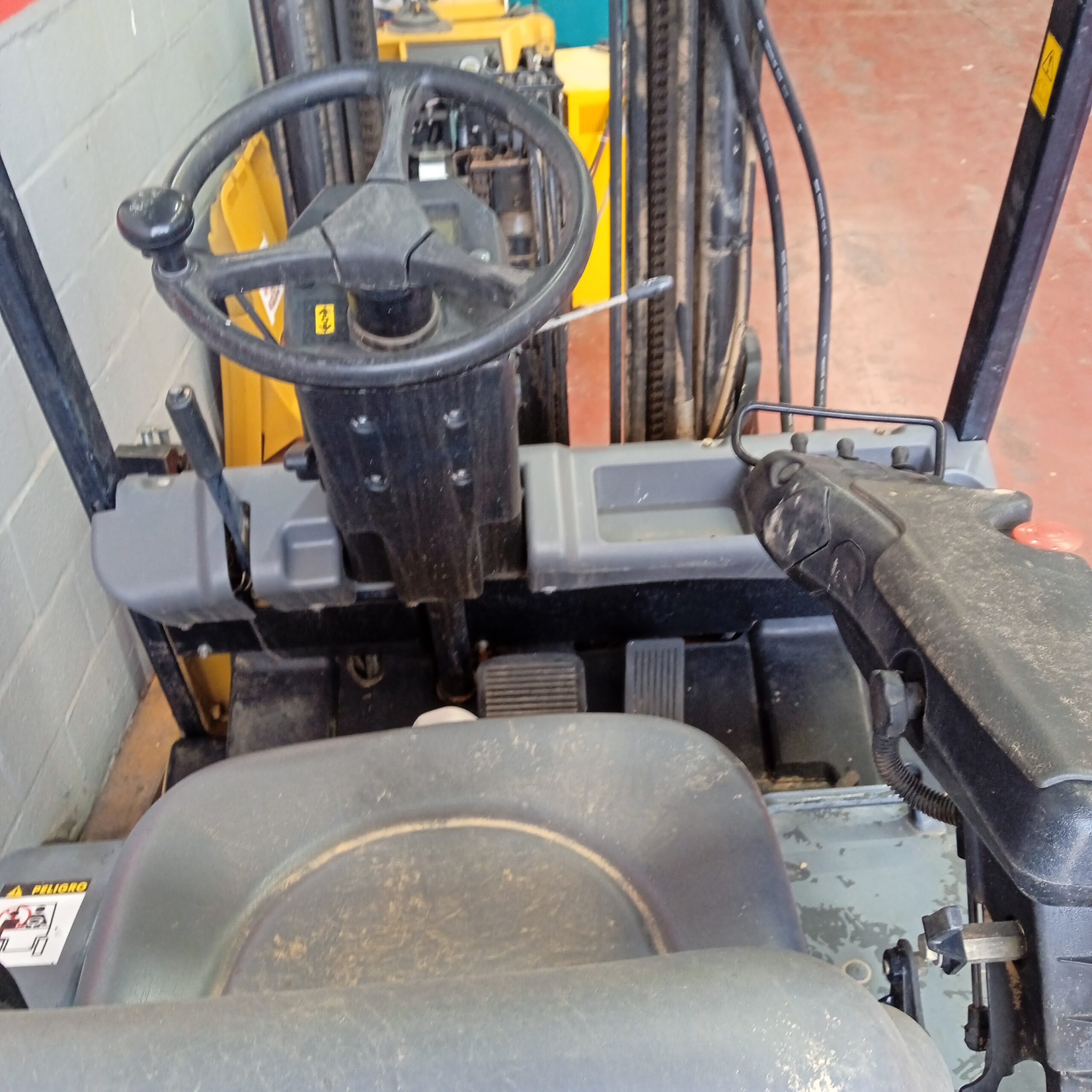 Equipada con una batería de 48V y 525Ah, garantiza una autonomía adecuada para jornadas laborales exigentes. Además, cuenta con desplazamiento lateral y palancas de control, facilitando maniobras precisas y seguras.