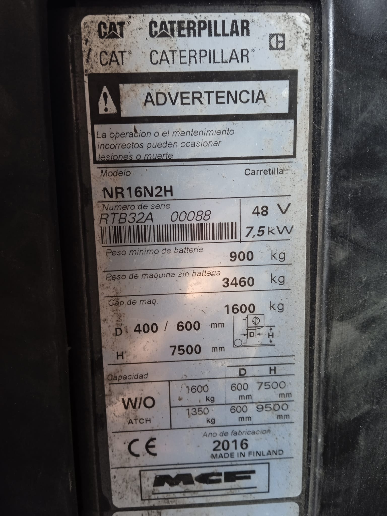 La CATERPILLAR – NR16NAH es una carretilla elevadora retráctil de tres ruedas, ideal para operaciones en almacenes y espacios reducidos. Con una capacidad de carga de 1.600 kg y un mástil tríplex que alcanza una altura de elevación de 9500mm, ofrece un rendimiento eficiente para tareas de manipulación de materiales.